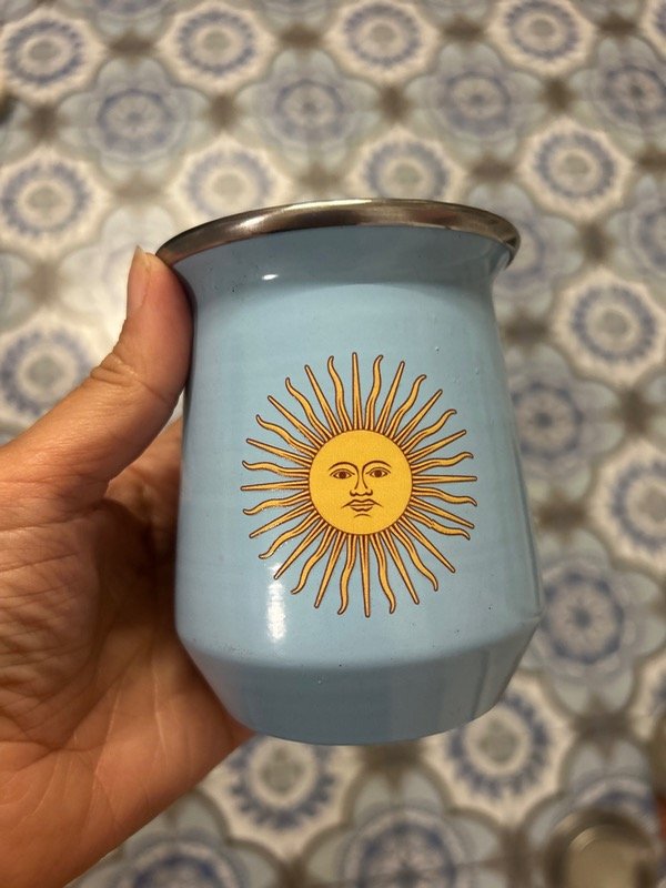 Mate de acero inoxidable color decorado en dtf, incluye bombilla.